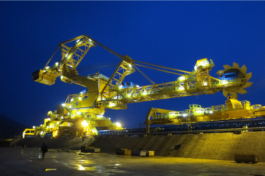 堆取料機(jī)是一種連續(xù)、高效的散料裝卸機(jī)械,廣泛應(yīng)用于港口、冶金、礦山、電力、煤化工等領(lǐng)域,可實(shí)現(xiàn)煤炭、礦石等散狀物料的堆、取連續(xù)作業(yè)。大連重工可研制額定能力100~15000t/h各種型式的堆取料機(jī)。