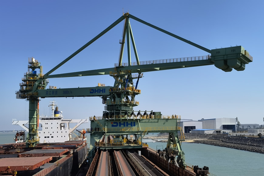裝船機(jī)方面,大連重工研制的裝船機(jī)為散料碼頭的搬運(yùn)設(shè)備,適用于煤炭、礦石、糧食等物料的裝船作業(yè)。適應(yīng)船型為5000DWT至400000DWT,生產(chǎn)率從1000t/h至12700t/h,生產(chǎn)的裝船機(jī)具有技術(shù)先進(jìn)、功能齊全、性能可靠、安全性高、維護(hù)方便、可利用率高等優(yōu)點(diǎn)。